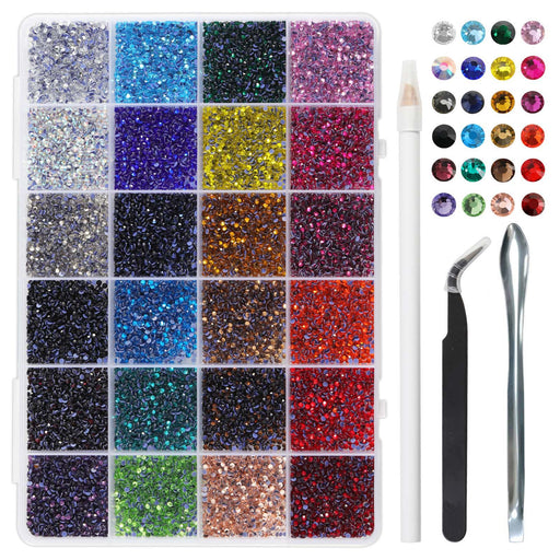 Hotfix Rhinestones Mixed 24 Colors, Rhinestones for Crafts Clothes, Hotfix Crystals with 1 Tweezers, 1 Wax Pencil and 1 Scoop