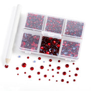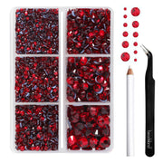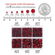 BEADSLAND Hotfix Rhinestones, 4000 PCS Red Rhinestones for Clothes Crafts Mixed 6 Sizes with Wax Pencil and Tweezers Kit, SS6-SS30, Siam