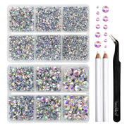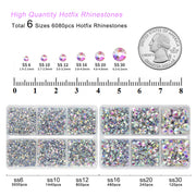 BEADSLAND Hotfix Rhinestones, 6080PCS AB Rhinestones for Clothes Crafts Mixed 6 Sizes with Wax Pencil and Tweezers Kit - Crystal AB
