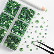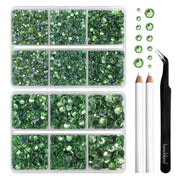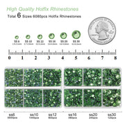 BEADSLAND Hotfix Rhinestones, 6080PCS Light Green Rhinestones for Clothes Crafts Mixed 6 Sizes with Wax Pencil and Tweezers Kit - Peridot