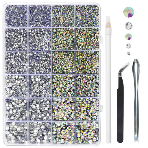View full detailsHotfix Rhinestones Multi Sizes Kit, 14400 pcs Heat Fix Rhinestone for Bedazzling Clothes Crafts Mixed 5 Sizes with Wax Pencil, Tweezers and Spoon, SS6-SS30, Clear AB and Crystal