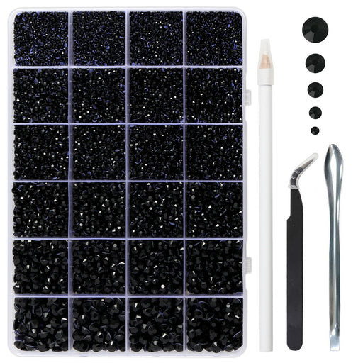 Black Hotfix Rhinestones Multi Sizes Kit, 14400 pcs Heat Fix Rhinestone for Bedazzling Clothes Crafts Mixed 5 Sizes with Wax Pencil, Tweezers and S...