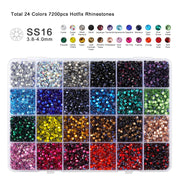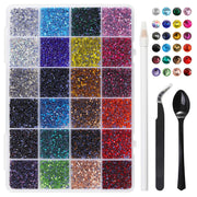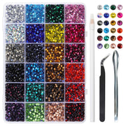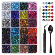 Hotfix Rhinestones Mixed 24 Colors, Rhinestones for Crafts Clothes, Hotfix Crystals with 1 Tweezers, 1 Wax Pencil and 1 Scoop
