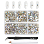 Beadsland 4300pcs Flatback Rhinestones, Nail Gems Round Crystal Rhinestones for Crafts,Mixed 6 Sizes with Picking Tweezers and Wax Pencil Kit-Blue Moonlight