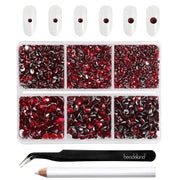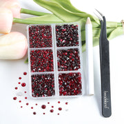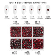 Beadsland 4300pcs Flatback Rhinestones, Nail Gems Round Crystal Rhinestones for Crafts,Mixed 6 Sizes with Picking Tweezers and Wax Pencil Kit- Dark Siam