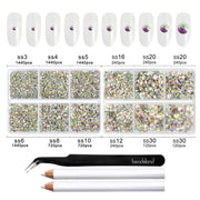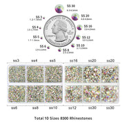 Beadsland 8300PCS Flatback Rhinestones, Nail Gems Round Crystal Rhinestones for Crafts, Mixed 10 Sizes with Wax Pencil and Tweezer Kit, SS3-SS30 - Crystal AB