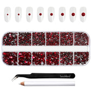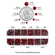 Beadsland Rhinestones for Makeup,8 sizes 2500pcs Flatback Rhinestones Face Gems for Nails Crafts with Tweezers and Wax Pencil- Dark Siam