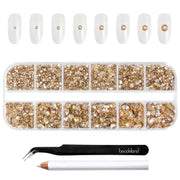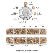 Beadsland Rhinestones for Makeup,8 sizes 2500pcs Flatback Rhinestones Face Gems for Nails Crafts with Tweezers and Wax Pencil- Golden Shadow
