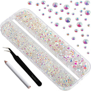 Beadsland Rhinestones for Makeup,8 sizes 2500pcs Flatback Rhinestones Face Gems for Nails Crafts with Tweezers and Wax Pencil- Transparent AB