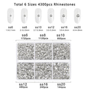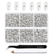 Beadsland 4300pcs Flatback Rhinestones, Nail Gems Round Crystal Rhinestones for Crafts,Mixed 6 Sizes with Picking Tweezers and Wax Pencil Kit- Crystal