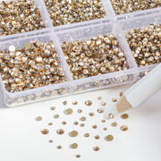 Beadsland 7200pcs Flatback Rhinestones,Nail Gems Round Crystal Rhinestones for Crafts,Mixed 6 Sizes with Wax Pencil Kit, SS3-SS10- Golden Shadow
