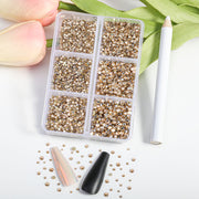 • Large Quantity Nail Art Rhinestones Gems: SS3(1.2-1.4mm) 1440pcs,SS4(1.5-1.7mm) 1440pcs,SS5(1.7-1.8mm) 1440pcs,SS6(1.9-2.1mm) 1440pcs,SS8(2.3-2.5mm) 720pcs,SS10(2.7-2.9mm) 720pcs.Quantities may vary slightly.Color shades of different sizes may vary slightly.
