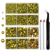 • More quantity of large rhinestones: SS6 rhinestones (1.9-2.1 mm) 4000 pcs, SS10 rhinestones (2.7-2.9 mm) 1440 pcs, SS16 rhinestones (3.8-4.0 mm) 576 pcs, SS20 rhinestones (4.6-4.8 mm) 576 pcs, SS30 rhinestones (6.3-6.5mm) 144 pcs. Quantities may vary slightly.Color shades of different sizes may vary slightly