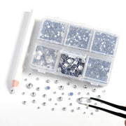 • Packaging: 1 box of 4000 pieces of Lake Blue Heat Healing Crystals, 6 sizes of rhinestones, a crayon and a tweezer