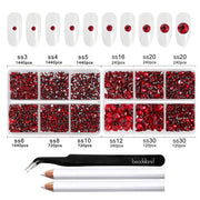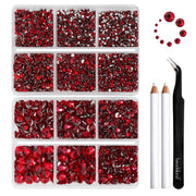 Beadsland 8300PCS Flatback Rhinestones, Nail Gems Round Crystal Rhinestones for Crafts, Mixed 10 Sizes with Wax Pencil and Tweezer Kit, SS3-SS30-Siam