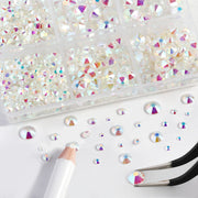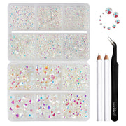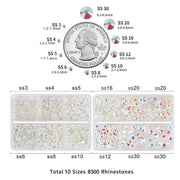 Beadsland 8300PCS Flatback Rhinestones, Nail Gems Round Crystal Rhinestones for Crafts, Mixed 10 Sizes with Wax Pencil and Tweezer Kit, SS3-SS30-Transparent AB