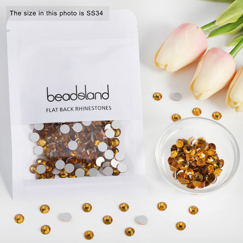 Beadsland Kristall-Strasssteine ​​mit flacher Rückseite, runde Edelsteine ​​für Nagelkunst und Bastelarbeiten, Klebefixierung – Golden Shadow