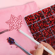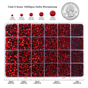 Red Hotfix Rhinestones Multi Sizes Kit, 14400 pcs Heat Fix Rhinestone for Bedazzling Clothes Crafts Mixed 5 Sizes with Wax Pencil,Tweezers and Spoon, SS6-SS30, Siam