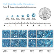 BEADSLAND Hotfix Rhinestones, 6080PCS Blue Rhinestones for Clothes Crafts Mixed 6 Sizes with Wax Pencil and Tweezers Kit - Aquamarine