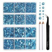 • Packaging: 1 box of 4000 pieces of Lake Blue Heat Healing Crystals, 6 sizes of rhinestones, a crayon and a tweezer