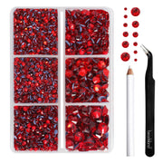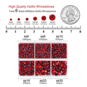 BEADSLAND Hotfix Rhinestones, 4000 PCS Light Red Rhinestones for Clothes Crafts Mixed 6 Sizes with Wax Pencil and Tweezers Kit, SS6-SS30, Light Siam