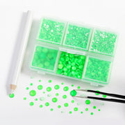 BEADSLAND Hotfix Rhinestones, 4000 PCS Neon Green Rhinestones for Clothes Crafts Mixed 6 Sizes with Wax Pencil and Tweezers Kit, SS6-SS30, Neon Green