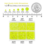 BEADSLAND Hotfix Rhinestones, 4000 PCS Neon Yellow Rhinestones for Clothes Crafts Mixed 6 Sizes with Wax Pencil and Tweezers Kit, SS6-SS30, Neon Yellow
