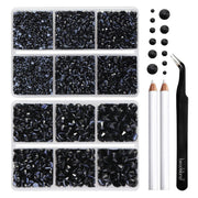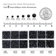BEADSLAND Hotfix Rhinestones, 6080PCS Black Rhinestones for Clothes Crafts Mixed 6 Sizes with Wax Pencil and Tweezers Kit - Jet Black