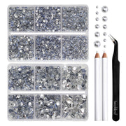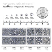 BEADSLAND Hotfix Rhinestones, 6080PCS Clear Rhinestones for Clothes Crafts Mixed 6 Sizes with Wax Pencil and Tweezers Kit - Crystal