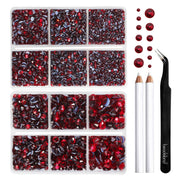 BEADSLAND Hotfix Rhinestones, 6080PCS Dark Red Rhinestones for Clothes Crafts Mixed 6 Sizes with Wax Pencil and Tweezers Kit - Dark Siam