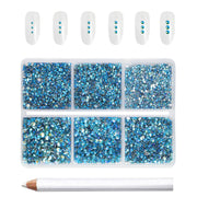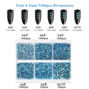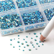 Beadsland 7200pcs Flatback Rhinestones,Nail Gems Round Crystal Rhinestones for Crafts,Mixed 6 Sizes with Wax Pencil Kit, SS3-SS10-Aquamarine AB