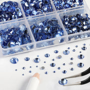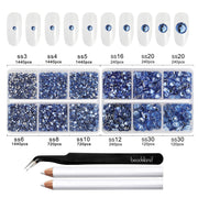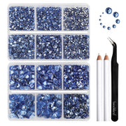 Beadsland 8300PCS Flatback Rhinestones, Nail Gems Round Crystal Rhinestones for Crafts, Mixed 10 Sizes with Wax Pencil and Tweezer Kit, SS3-SS30-Light Sapphire