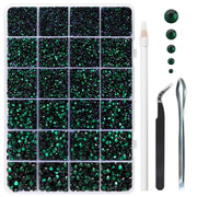 Dark Green Hotfix Rhinestones Multi Sizes Kit, 14400 pcs Heat Fix Rhinestone for Bedazzling Clothes Crafts Mixed 5 Sizes with Wax Pencil, Tweezers and Spoon, SS6-SS30, Emerald