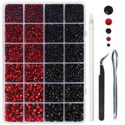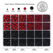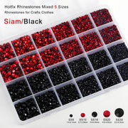 Hotfix Rhinestones Multi Sizes Kit, 14400 pcs Heat Fix Rhinestone for Bedazzling Clothes Crafts Mixed 5 Sizes with Wax Pencil, Tweezers and Spoon, SS6-SS30, Siam and Black